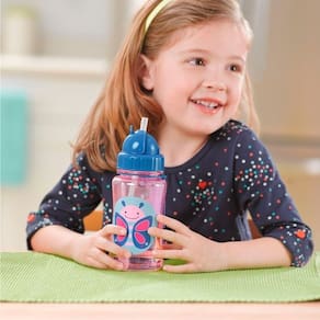 Garrafa Flip Borboleta Zoo Skip Hop fofa e divertida para crianças. Mantenha seu filho hidratado com estilo e diversão.