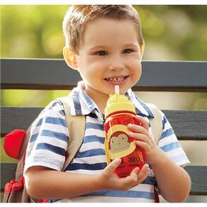 Garrafa Flip Macaco Zoo Skip Hop, fofa e divertida para crianças. Ideal para levar água e sucos para a escola ou passeios.