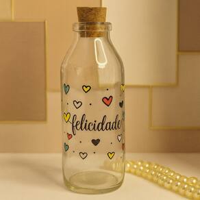 Garrafa Frasco Vidro Decorativa Felicidade Presente Transforme seu ambiente com delicadeza e boas energias! Garrafa/Frasco de Vidro Decorativa Felicidade é perfeita para compor a decoração da sua casa, escritório, altar ou até mesmo para presentear alguém especial. - Material: Vidro resistente e elegante- Detalhe: Estampa/tema Felicidade , trazendo boas vibrações- Uso: Decoração de ambientes, presentes criativos, lembranças especiais- Versátil: Pode ser usada em salas, quartos, escritórios, altares ou eventos.