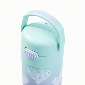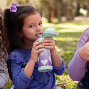 Projetada para mãos pequenas, a Thermos Funtainer F410 permite que a criança abra e feche com facilidade usando apenas uma mão, graças ao seu sistema de abertura intuitivo, ergonômico e higiênico, já que a tampa permanece fechada após o uso, sem contato com o ambiente. O canudo de silicone macio proporciona um toque suave ao beber, enquanto a alça externa facilita o transporte, perfeita para a escola, passeios e atividades ao ar livre.