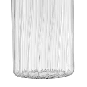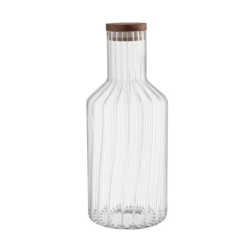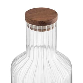 Produzida em vidro borossilicato canelado, um material que atribui leveza à garrafa. Com capacidade para 1,3 L, a tampa com vedação em madeira é despojada e acrescenta um diferencial à mesa posta.