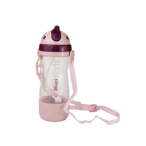Garrafa Infantil com porta-lanchinho Travel com Canudo Retrátil em Silicone 380ML anti-vazamento Rosa Clingo