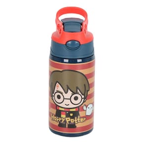 Armazenamento 500ml; Fechamento em rosca; Tampa com bico dosador; Suporte para carregar; Válvula antivazamentos; Acompanha canudo; Estampa: harry potter Observação: não é térmica.