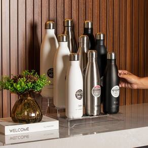 Garrafa em aço inox, ideal para quem pratica exercicios ou cliclimo e caminhada, conserva bem a temperatura da agua, e tem capacidade de 1 litro para que você possa se hidratar e cuidar da saude enquanto treina.
