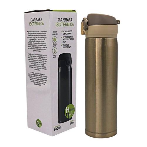 Contém: 01 garrafa isotérmica 500ml com tampa plástica fosca com trava de segurança - dourada Marca: Home & More