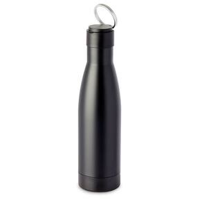 Garrafa térmica em aço inox isolada a vácuo com parede dupla, tampa de plástico com alça de transporte de aço inoxidável. Com capacidade de até 500ml.
