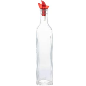 Garrafa para Azeite de Vidro Lyor 510ml Frasco Porta Vinagre com Tampa de Plástico Vermelha.