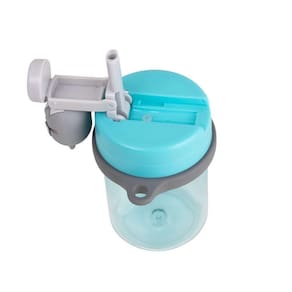 Contém 1 garrafa, 1 alça, 1 canudo e 1 manual. Tamanho: 12 cm x 8 cm x 15 cm. Material: Garrafinha: acrilonitrila estireno. Tampa: polipropileno. Detalhes: policloreto de vinila. Capacidade: 350 ml. Evite deixar a tampa em contato com a água por longos períodos. Seque-a bem após lavá-la. Não coloque o produto na geladeira, nem no congelador. Não recomendado para líquidos quentes. Temperatura máxima do líquido: 40 C. Este produto não é um brinquedo. Livre de BPA. Choques ou quedas podem danificá-la. Evite vazamentos. Carregue-a apenas na posição vertical. ATENÇÃO: Idade recomendada: +3 anos. Validade indeterminada.