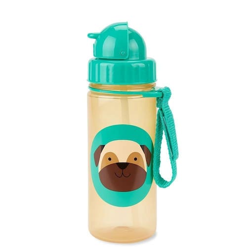 A Garrafa Flip Zoo Cachorro Pug da Skip Hop é perfeita para acompanhar os pequenos para qualquer lugar. Feita em material extremamente resistente, não mancha nem pega odor e sabor. Com a proteção de uma tampa flip-top que mantém o canudo sempre limpo, tem vedação de silicone para evitar vazamentos. Acompanha alça que se conecta a qualquer lugar.CUIDADOS NECESSÁRIOS: Antes de cada uso, limpe o produto. Inspecione e lave bem antes do primeiro uso, e após cada uso; Não congele, coloque no micro-ondas ou ferva; Desmonte antes de lavar; lavagem à mão com detergente, ou lava-louças (na prateleira superior).Para desmontar:1. Puxe o canudo de plástico e o bico de silicone da parte inferior da tampa;2. Separe o canudo de plástico e o bico de silicone;Para remontar:1. Empurre o canudo plástico no bico de silicone;2. Puxe o bico de silicone pela parte superior da tampa.