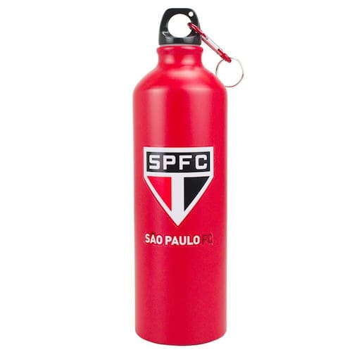 Garrafa em alumínio 750 ml com mosquetão. Garrafa com capacidade para 750ml, com tampa de rosca. Uma ótima dica para presentear aquele seu amigo do Tricolor. Produto oficial licenciado.