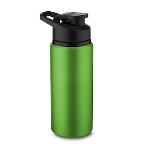 Feita em alumínio resistente, essa garrafa squeeze possui uma estrutura durável e de alta qualidade. Sua pintura metalizada confere um visual moderno e elegante, e a tampa de rosca garante que a água não vaze durante o transporte.