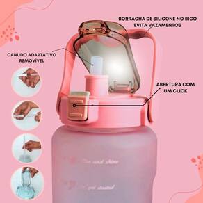olha só como é fácil ter uma vida saudável, com esta garrafinha squeeze, além de linda, ela é indispensável para o seu dia-a-dia. Possui capacidade para 2000 ml de água e tampa com trava de fechamento, proporcionando qualidade e segurança para levá-la para vários lugares, mesmo preenchida com líquido. Dá para usar no trabalho, em passeios, na academia, em casa ou no esporte. Ou seja, acabou a desculpa para não se hidratar. Ela também mede e ajuda no consumo de água por dia. A garrafa squeeze é o produto perfeito para você armazenar seus líquidos de maneira eficiente. Cabe perfeitamente na porta da geladeira ou pode ser guardada deitada e não vaza. Com um design moderno e diferenciado com diferentes cores ela apresenta uma tampa que é só pressionar o botão que ela abre, que facilita muito na hora de abrir e fechar. Seu design moderno, possui uma coloração fosca com um medidor motivacional estampado em seu corpo. Complementando com a tampa projetada para melhor uso e tendo uma ótima vedação sem riscos de vazamento. - design inovador e moderno. - não ocupa grandes espaços;