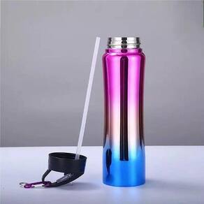 A Garrafa Gold Sports Walk 750ml Dupla Camada Aço inoxidável 304 Canudo bico Anatômico e Alça com bocal anatômico. Muito eficiente na conservação da temperatura de bebidas geladas ou quentes e também segura muito bem o gás de refrigerantes. A tampa, sem bem fechada, veda totalmente a garrafa, impedindo respingos e vazamentos confeccionada em plástico BPA FREE, já a Garrafa Gold Sports Walk 750ml Dupla Camada Aço inoxidável 304 Canudo bico Anatômico e Alça com bocal anatômico é confeccionada em dupla camadas de aço inoxidável - 304. A garrafa tem fechamento à vácuo de alto desempenho por rosca e parede dupla que mantém o exterior sem condensação,o que garante maior segurança para evitar molhar a sua bolsa, mochila, mesa ou bancada. É acionada por meio de um botão super seguro. O design da borda permite o controle do fluxo de líquido do interior ao exterior da garrafa e Conta com bocal largo para acomodar cubos de gelo. Possui mosquetão ideal para caminhadas longas e tampa com bico anatômico com canudo de silicone e possui alça para opção de carregar com a mão.