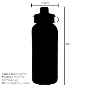 Características:Material: AlumínioCapacidade: 600mlTipo de tampa: Bico RosqueávelTérmico: Não