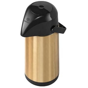 Seu exterior em inox com acabamento Gold proporciona maior resistência e um visual moderno e sofisticado, enquanto a camada de verniz ajuda a evitar marcas de dedo, mantendo o produto sempre com aparência impecável. O sistema de bomba de pressão oferece um jato forte e preciso, permitindo servir as bebidas com facilidade, sem necessidade de inclinar a garrafa, além de contar com sistema que não pinga.