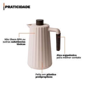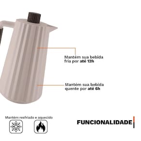 Distribuído por feheros shop Garrafa térmica 1 litro café chá premium click abre fecha Atenção A garrafa térmica 1 litro é perfeita para conservar suas bebidas quentes ou frias por mais tempo, com eficiência e estilo. Seu design elegante e acabamento fosco combinam com diversos ambientes, como escritório, cozinha ou área gourmet. Com capacidade de 1 litro, é ideal para uso diário em casa ou no trabalho. Fabricada com materiais de alta qualidade e livre de bpa, conta com vedação eficiente e alto desempenho térmico. Não utilizar com bebidas gaseificadas, leite ou derivados, pois podem gerar pressão interna e comprometer a vedação. Produto não compatível com micro-ondas, freezer, geladeira ou lava-louças. Para melhor desempenho, siga as instruções de uso e conservação. Informações do produto Ideal para quem busca um produto funcional e estiloso, a garrafa térmica mantém café, chá ou outras bebidas na temperatura ideal por horas. Seu acabamento fosco é elegante e transforma qualquer ambiente em um espaço mais acolhedor e charmoso. Para começar bem o dia ou servir com charme uma visita especial, essa garrafa une funcionalidade com um toque de sofisticação. A tampa com abertura click permite o uso com uma só mão, oferecendo agilidade e segurança. O bico com sistema antigotejamento evita respingos e a tampa com vedação hermética mantém a temperatura e impede vazamentos. A base estável e o design ergonômico tornam o uso ainda mais confortável. Especificações técnicas - design elegante e funcional que combina com qualquer estilo de ambiente, ideal para uso doméstico ou - sistema click de abertura e fechamento com praticidade no uso e vedação eficiente que conserva a temperatura - isolamento interno de alta qualidade que conserva líquidos quentes por até 6 horas e frios por até 12 horas - materiais seguros e resistentes, feita em polipropileno atóxico com revestimento interno de vidro - acabamento premium com textura fosca que proporciona um toque sofisticado e moderno - versatilidade e conforto, ideal para café da manhã, reuniões, visitas e outras ocasiões - ideal para presentear aquela pessoa especial Ficha técnica do produto - altura total: 27 cm - diâmetro da base: 15,3 cm - peso: 650 g - capacidade: 1 l - material externo: polipropileno com acabamento fosco - material interno: ampola de vidro - tampa: sistema click e vedação hermética - alça: anatômica - bico: sistema antigotejamento - conservação: até 6 h para líquidos quentes e 12 h para líquidos frios - produto atóxico - cor garrafa kiara: bege - cor garrafa wooden: nude Antes e depois do primeiro uso - antes do uso: lave a garrafa com água morna e sabão neutro para remover resíduos de fábrica. Faça o pré-aquecimento com água quente ou o pré-resfriamento com água fria, conforme a bebida desejada, e deixe agir por alguns minutos. - após o uso: realize a limpeza manual com sabão neutro e esponja macia. Evite produtos abrasivos e não utilize máquina de lavar louças para garantir a durabilidade e a eficiência térmica. Itens inclusos no pacote - 01 garrafa térmica 1 litro café chá premium click abre fecha Todas as fotos são reais dos produtos. Qualquer dúvida, estamos à disposição Dúvidas frequentes 01 - a garrafa é nova Acompanha 03 - a garrafa mantém a bebida quente por quanto tempo A tecnologia de isolamento com vedação hermética mantém líquidos quentes por até 6 horas e frios por até 12 horas. 04 - a garrafa pode ser lavada na máquina de lavar louças Recomendamos a lavagem manual, com água morna e sabão neutro, para preservar o acabamento e a eficiência térmica. 05 - como faço para acompanhar o envio Você pode acompanhar pelo código de rastreamento fornecido após a confirmação do envio.