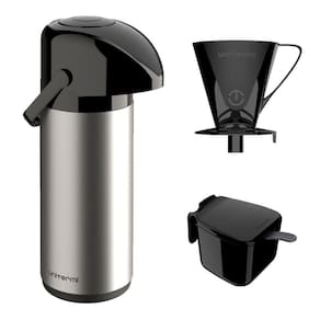 Garrafa térmica 1l inox café água unitermi verona + filtro Garrafa térmica de inox 1l unitermi para café chá e chimarrão + açucareiro e filtro A garrafa térmica verona é produzida em aço inox, que além de garantir um visual clássico e elegante, é um material fácil de limpar e muito resistente. O design de pressão da unitermi foi desenvolvido visando praticidade, pois não é necessário inclinar a garrafa para servir a bebida, basta apertar o botão da tampa. - com alça quefacilitao momento de carregá-la; - higiene fácil devido a sua superfície lisa e por ser desmontável; - sistema de pressão para se servir, além de bico anti-pingo para evitar possíveis vazamentos e a entrada de poeira e insetos; - eficiência térmica: 12 horas frio e 8 horas quente; - possui alça que facilita o manuseio e transporte; - bico anti gotas; - livre de bpa; Obs: o teste para verificação de funcionamento correto da garrafa deve ser feito somente com água, para não danificar a integridade do produto em caso de necessidade de troca. Não aceitaremos devoluções após o uso com café. Especificações técnicas: - capacidade: 1l; - peso: 640g; - material do exterior da garrafa: aço inox; tampa e demais peças em plástico injetado; - material do interior da garrafa: ampola de vidro; - altura garrafa com tampa: 31,5 cm; - largura da garrafa: 11 cm; - largura da tampa: 14 cm; Itens inclusos: - 1x garrafa térmica inox 1l com alça unitermi - 1x filtro suporte para café - 1x açucareiro 350ml