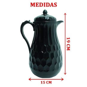 Características Gerais do Produto: - Material: Plástico; Vidro - Modelo: Garrafa Térmica 1 Litro - Cor: Preto - Dimensões aproximadas: Largura 19cm X Diâmetro 15cm X Altura 27cm Garantia: - Garantia contra no transporte