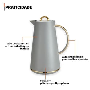 Distribuído por feheros shop Garrafa térmica 1 litro samira café chá premium alça dourada click abre e fecha Atenção A garrafa térmica samira 1 litro é ideal para manter bebidas quentes ou frias por mais tempo. Com design moderno e elegante, combina com qualquer ambiente. Com capacidade de 1 litro, é perfeita para o uso diário. Feita com materiais de alta qualidade e livre de bpa, garantindo segurança e eficiência térmica. Não utilizar bebidas gaseificadas, leite ou derivados, pois podem gerar pressão interna e danificar a garrafa. Também não deve ir ao micro-ondas, freezer, geladeira ou lava-louças. Para manter o desempenho, siga as orientações de uso e conservação. Informações do produto Para quem busca praticidade e eficiência, essa garrafa é ideal. Conserva líquidos quentes como café, chá e leite ou frios como sucos e água. Seu acabamento fosco premium, alça dourada ergonômica e tampa com sistema click proporcionam praticidade, elegância e vedação segura. Possui bico antigotejamento que evita respingos ao servir. A tampa click facilita abrir e fechar, preservando a temperatura e evitando vazamentos. Especificações técnicas - design sofisticado e versátil: combina com qualquer estilo, agregando elegância e praticidade ao ambiente, seja em casa ou no trabalho. - praticidade no dia a dia: a abertura facilita o preenchimento, a limpeza e o manuseio, tornando o uso diário ainda mais fácil. - fechamento de alta qualidade: garante eficiência térmica, evitando vazamentos e mantendo a temperatura por mais tempo. - material premium e durabilidade: feita com polipropileno resistente e revestimento interno de vidro, garantindo durabilidade e eficiência. - facilidade no transporte: alça ergonômica para transporte prático e sem esforço. - ideal para presentear: escolha perfeita para surpreender aquela pessoa especial em casamentos, chás de cozinha, ou até de casa nova. Ficha técnica do produto Altura total: 27 cm Diâmetro da base: 15,5 cm Peso: 650 g Capacidade: 1 l Material externo: polipropileno com acabamento fosco Material interno: vidro Tampa: click abre e fecha com vedação hermética Alça: dourada fixa Com bico antigotejamento Conserva líquidos quentes por até 6 horas Conserva líquidos frios por até 12 horas Produto atóxico Antes e depois do primeiro uso: - antes: lave a garrafa com água morna e sabão neutro para remover qualquer resíduo de fabricação. Após a limpeza, é importante fazer um pré-aquecimento ou pré-resfriamento, dependendo da bebida que você deseja manter na temperatura ideal. Para bebidas quentes, adicione água quente na garrafa e deixe por alguns minutos. Para bebidas frias, faça o pré-resfriamento com água gelada, também por alguns minutos. - depois: lave manualmente com sabão neutro e uma esponja macia. Evite o uso de produtos abrasivos ou máquina de lavar louças, para preservar a integridade do revestimento e a eficiência térmica. Itens inclusos no pacote 01 garrafa térmica samira 1 litro com alça dourada e tampa click Todas as fotos são reais dos produtos, qualquer dúvida estamos à disposição Dúvidas frequentes 01- a garrafa é nova Acompanha 03 - a garrafa térmica é realmente eficiente para manter a temperatura por muito tempo R: sim, a garrafa térmica possui excelente vedação e tecnologia de isolamento, garantindo que sua bebida se mantenha quente ou fria por várias horas. 04- a garrafa pode ser lavada na máquina de lavar louças R: recomendamos que a lavagem seja feita manualmente, com água morna e sabão neutro, para garantir a longevidade do produto e evitar danos ao revestimento. 05- como faço para acompanhar o envio R: você pode acompanhar o envio por meio do código de rastreamento fornecido na sua conta após a confirmação do envio.