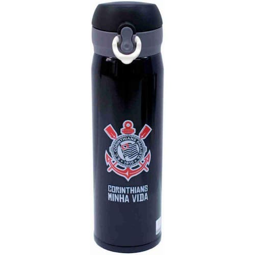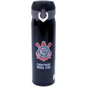 Garrafa Térmica 420ml - Corinthians Garrafa térmica de capacidade para 420ml na cor preta e gravada com brasão do Corinthians, o Todo Poderoso Timão. Tampa com trava. Detalhes da Garrafa Térmica de Inox do Corinthians: Peso 0,240 gramas; Altura 22,50cm; Largura 6,50cm; Comprimento 6,50cm. Ficha técnica - Cor: Preto Ean: 4894290271754