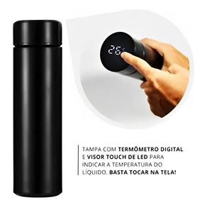 Ao tocar suavemente na parte superior da tampa da garrafa, você pode verificar a temperatura da bebida dentro em qualquer lugar e a qualquer momento para beber da maneira mais adequada. Modelo em aço inoxidável com isolamento a vácuo, que mantém por longo tempo a temperatura dos líquidos Marca: Não Informado