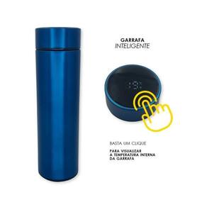 Garrafa Térmica Azul com Medidor Temperatura Digital 500ml Garrafa Térmica com Medidor Temperatura Digital 500ml ===================================== Essa garrafa térmica inteligente vem com termômetro digital para mostrar exatamente a temperatura do seu interior. Acabamento de altíssima qualidade, torna o produto mais atraente e elegante. A tela LED localizada na tampa da garrafa, informa a temperatura interna com um simples toque e em tempo real. Não necessita de recarga, já vem com bateria de alta durabilidade. Para reforçar ainda mais sua qualidade, é feita em aço inox, que ajuda a manter a temperatura por até 24 horas. Garrafa perfeita para ser Utilizado no dia a dia, prática e compacta, vem com cestinha de infusão para tomar chás e sucos detox. ===================================== Contém: 01 Garrafa Especificação: - Material: Aço Inox e Plástico - Medida: 22,5cm x 6,5cm - Peso: 250 gramas - Capacidade: 500ml - Touch: Sim - Termômetro Digital: Sim na Tampa - Cor: Azul ===================================== Devido à diferença entre monitores e iluminação diferentes, pode haver variação na tonalidade apresentada no anúncio. Medidas muito aproximadas. Marca: Não Informado