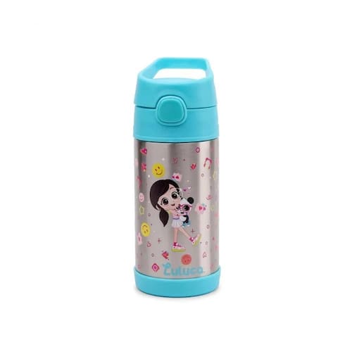 Estilo, praticidade e frescor com a garrafa térmica azul luluca squeeze 350ml A queridinha das crianças chegou para completar o kit escolar com muito charme com design exclusivo da personagem luluca, essa garrafa térmica é perfeita para acompanhar os pequenos em todos os momentos, da escola aos passeios. - corpo em aço inoxidável que mantém a bebida quente ou fria por até 8 horas - tampa com trava de segurança e abertura fácil com botão - ideal para uso infantil - canudo de silicone macio: seguro e confortável para crianças pequenas - capacidade de 350ml: perfeita para levar na mochila ou lancheira - livre de bpa e substâncias tóxicas - mais saúde e segurança - visual encantador com cores vibrantes e tema oficial luluca