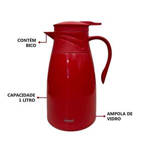 Garrafa Térmica Bule 1L Mood Tpc para Cafés e Chás em Polipropileno com Conservação de Temperatura Vermelho