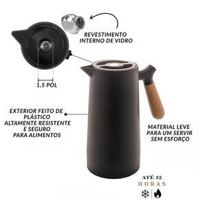 A garrafa térmica com cabo de madeira é ideal para manter suas bebidas quentes, como leite, chá e café por muitas horas A garrafa possui um revestimento interno que não transfere odores nem sabores, além de manter a temperatura. Elegante e prática, sua tampa possui uma vedação perfeita e eficaz. Ela conta com uma tecnologia especial: para servir a bebida, basta pressionar o botão superior, que, além de ser prático e rápido, mantém a temperatura do café por não ter uma abertura completa. Para abrir basta rosquear, o bico dosador possui um formato estratégico para evitar derramamentos e controlar o fluxo do líquido. O cabo em madeira não só confere estilo à garrafa, mas também é ergonômico e não esquenta ao toque. Esta garrafa é confeccionada com materiais excelentes, garantindo durabilidade e resistência.