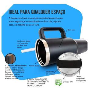 Conteúdo da embalagem: 1 garrafa térmica 40oz com tampa e canudo
