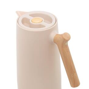 Garrafa térmica com cabo em madeira nórdica new 1 litro bege Garrafa térmica com cabo em madeira nórdica new 1 litro begeA garrafa térmica nórdica seus encontros em família e amigos ficam mais práticos. Seu detalhe em madeira na alça e o botão click para servir em dourado deixa a seu design mais sofisticado e sua mesa muito mais charmosa.Caracteristicas do produtoMaterial: plástico e vidroCapacidade: 1 litroQuantidade: 1 peçaReferencia: 29275Marca: wolff Limpeza e conservaçãoNão usar abrasivos como removedores de gordura, água sanitária, limpa vidros. não levar ao microondas. não levar a lava-louças.É aconselhável a lavagem da peça à mão. Sua conservação exige cuidados muito simples como lavar com detergente e esponja macia. Como utilizar sua garrafa térmica pela primeira vez: escalde a garrafa enchendo-a até seu limite com água fervente aprox. 96 , feche bem e deixe por quatro horas. Se após esse descanso a água permanecer quente, sua garrafa está pronta para o uso. O teste deverá ser feito com água, pois se houver indícios de uso com outras bebidas a troca não será realizada. Para um melhor desempenho da temperatura, utilize a capacidade total da garrafa térmica, visto que o tempo de conservação depende da temperatura inicial dos líquidos e o número de vezes em que o produto é aberto.