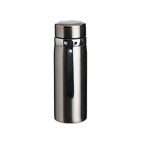 Garrafa térmica 800ml em Inox parede dupla. Possui tampa plástica revestida em Inox com borracha para vedação evitando o vazamento de líquido e prezando a temperatura, infusor e alça em couro sintético.