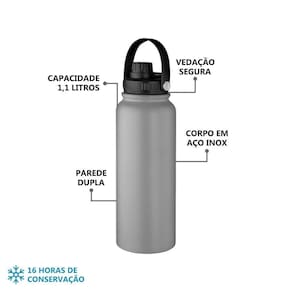 Fabricada em aço inoxidável de alta qualidade, a garrafa é sinônimo de durabilidade e resistência. Você pode utilizá-la em diferentes ocasiões sem receio de danos, aproveitando ao máximo suas funcionalidades. Com uma capacidade de 1,1 litros, ela é espaçosa o suficiente para armazenar suas bebidas favoritas, como café quente, chás refrescantes ou água gelada para um dia de pique-nique.