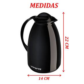 1 Garrafa Térmica Preta com 22cm de altura e 14cm de diâmetro;