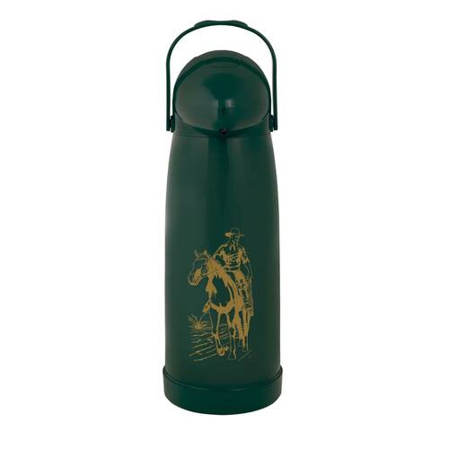 Estampadas com a figura do Gaúcho tradicionalmente pilchado junto de seu inseparável companheiro, o cavalo, as Garrafas Pressão Farroupilha foram desenvolvidas para esse povo que tem orgulho da sua cultura e não dispensa um bom chimarrão. Com capacidade para 1,9 Litros, tem sistema de bombeamento superior devido a presença do anel de vedação que melhora a pressão e sistema corta pingo. O novo design da cabeça a torna mais anatômica, permitindo servir a bebida de forma confortável e segura. O novo acabamento evita o acúmulo de sujeiras. Suas peças plásticas são fabricadas em polipropileno virgem atóxico e sua ampola é de vidro, proporcionando mais proteção térmica e perfeito acabamento. A Garrafa Pressão Farroupilha mantém sua água na temperatura perfeita e acompanha sua tradição por todos os lugares!