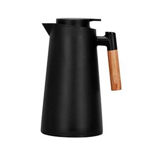 Garrafa Térmica Design Cabo Madeira Botão Abre Fácil Preta