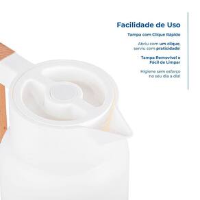 Design moderno e funcional - modelo elegante com acabamento clean - cabo com detalhe em madeira para um toque sofisticado - ideal para uso doméstico ou cafeterias, escritórios e eventos -------------------- Isolamento térmico de alta qualidade - mantém líquidos quentes ou frios por horas - interior em vidro com vedação eficiente - tampa com trava anti-vazamento -------------------- Praticidade no dia a dia - abertura rápida com um clique - tampa removível, fácil de limpar - serve com precisão, sem desperdício -------------------- Benefícios extras - portabilidade: leve para onde quiser, sem perder temperatura - economia de energia: evita reaquecer ou resfriar bebidas várias vezes - ideal para café, chá, leite e outras bebidas -------------------- Cuidados com o produto - evite quedas ou impactos fortes - limpe com água morna e detergente neutro regularmente - seque bem após o uso -------------------- Sobre nós: Especificações técnicas: Especificações do produto - capacidade: 1 litro - composição: plástico pp, vidro interno e cabo com acabamento em madeira - tampa com botão de despejo - design ergonômico e seguro - código do produto: 117001 - ean: 7898752923141 - validade: indeterminada - condição: novo Marca: Não Informado
