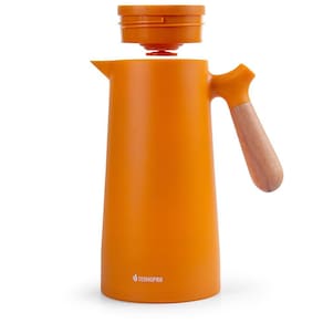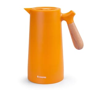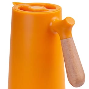 Garrafa Térmica Elegance Laranja 1 L TermoproA Garrafa Térmica Elegance Laranja 1 L Termopro mantém as bebidas quentes por até 6h e frias por até 12h, possui sistema de servir com um apenas “clique”, ampola de vidro exclusiva em cobre e cabo esculpido em madeira.