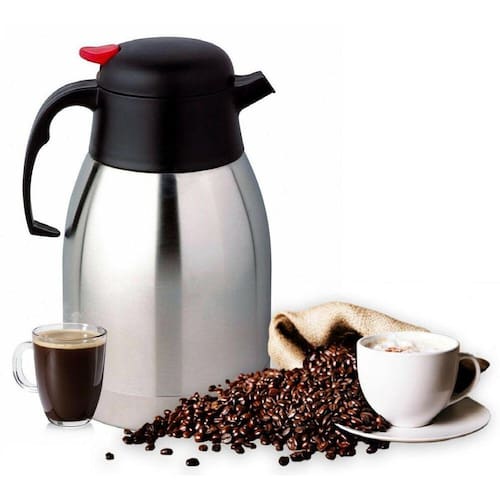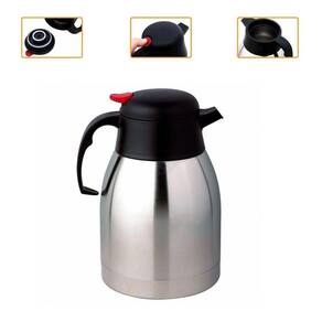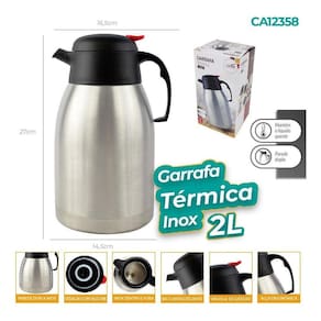 Garrafa Térmica Gatilho Café Da Manhã Mesa Posta Leite 2 litros Essa garrafa mantem a temperatura do seu café/água por muito mais tempo que as garrafas comuns, isso acontece por conta do seu sistema super eficiente de parede dupla com revestimento térmico lacrado a vácuo, isso permite manter o líquido quente por mais de 6H e frio até 12H, perfeita para levar ao camping, trilhas, piquenique e longas viagens de carro, pode ser também uma excelente opção para empresas onde muitas pessoas manuseiam a garrafa ao decorrer do dia essa garrafa é mais resistente a quedas do que as garrafas tradicionais de ampola de vidro. PRINCIPAIS CARACTERISTICAS - Bico antigotejamento- Capacidade 2 Litros- Dimensões: 26 x 16 cm altura x diâmetro - Válvula gatilho, não precisa abrir a tampa, basta pressionar o gatilho vermelho e inclinar a garrafa- Conservação térmica quente e frio quente 6h e frio até 12h - Parede dupla inox com isolamento térmico a vácuo- Temperatura por tempo: . Início: 95C. 4h: 82. 6h: 77 temperatura ideal do café . 8h: 73. 12h: 67. 24h: 55