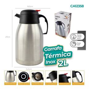 Garrafa Térmica Gatilho Café Da Manhã Mesa Posta Leite 2 litros Essa garrafa mantem a temperatura do seu café/água por muito mais tempo que as garrafas comuns, isso acontece por conta do seu sistema super eficiente de parede dupla com revestimento térmico lacrado a vácuo, isso permite manter o líquido quente por mais de 6H e frio até 12H, perfeita para levar ao camping, trilhas, piquenique e longas viagens de carro, pode ser também uma excelente opção para empresas onde muitas pessoas manuseiam a garrafa ao decorrer do dia essa garrafa é mais resistente a quedas do que as garrafas tradicionais de ampola de vidro.