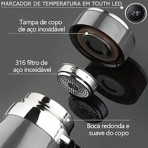 - Não necessita de recarga (carregamento), já inclusa uma bateria de alta durabilidade, que está sempre ativa para nunca te deixar na mão. Não tenha a reocupação de recarregar, deixe que a garrafa trabalhe sem interrupções. (NUNCA LAVE A TAMPA DE LED!)