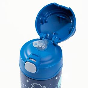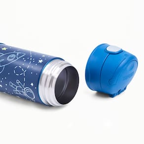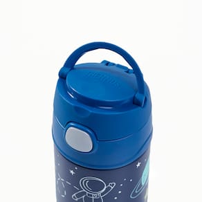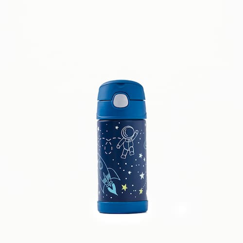 Projetada para mãos pequenas, a Thermos Funtainer F401 permite que a criança abra e feche com facilidade usando apenas uma mão, graças ao seu sistema de abertura intuitivo, ergonômico e higiênico, já que a tampa permanece fechada após o uso, sem contato com o ambiente. O canudo de silicone macio proporciona um toque suave ao beber, enquanto a alça integrada facilita o transporte, perfeita para a escola, passeios e atividades ao ar livre.