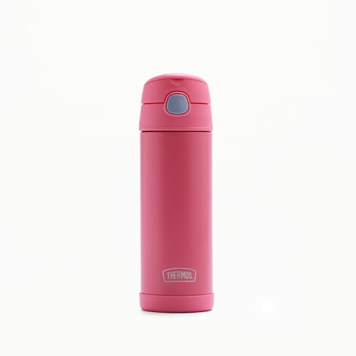 Seu sistema de abertura com botão de pressão e o bico rígido confortável, que não vaza, garantem praticidade e higiene, mantendo o bico coberto quando não está em uso. A alça de transporte integrada, com pega suave, permite fácil mobilidade, enquanto o design robusto e leve facilita o uso no dia a dia, seja na escola, em passeios ou atividades esportivas. Com capacidade de 470 ml, esta garrafa é a maior da linha Thermos Kids, perfeita para crianças maiores que precisam de mais hidratação durante o dia.