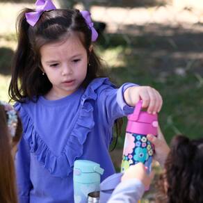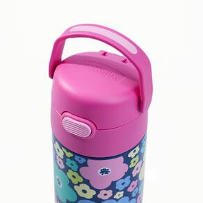 Projetada para mãos pequenas, a Thermos Funtainer F410 permite que a criança abra e feche com facilidade usando apenas uma mão, graças ao seu sistema de abertura intuitivo, ergonômico e higiênico, já que a tampa permanece fechada após o uso, sem contato com o ambiente. O canudo de silicone macio proporciona um toque suave ao beber, enquanto a alça externa integrada facilita o transporte, perfeita para a escola, passeios e atividades ao ar livre.