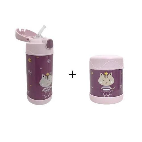 Garrafa térmica infantil + pote térmico premium rosa Kit refeição clingo garrafa térmica e pote térmico :