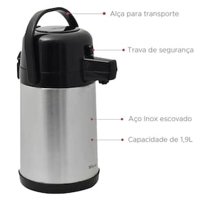 Garrafa Térmica Inox 1,9L Parede Dupla Termo Blindagem Vácuo