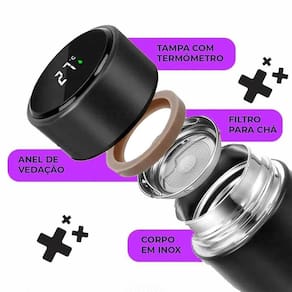 Sua tela conta com a tecnologia led que fica localizada na tampa é sensível ao toque e te permite visualizar em tempo real a temperatura interna da garrafa.
