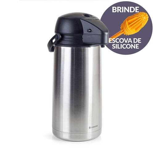 Garrafa Térmica Aço Inox Basic Airpot 1,9 L Termopro e Escova De Silicone Para Limpeza De Garrafas Laranja Termopro