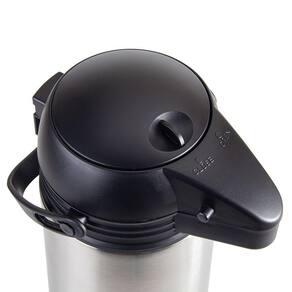 Garrafa Térmica Aço Inox Basic Airpot 1,9 L TermoproA Garrafa Térmica Aço Inox Basic Airpot 1,9 L Termopro é produzida em aço inoxidável escovado de alta qualidade, com dupla camada protetora e ampola em inox inquebrável. Possui sistema para servir "abre e fecha" e isolante térmico que mantém as bebidas quentes por até 9h e frias por até 20h. Muito resistente e fácil de limpar, com design moderno, botão para acionamento que potencializa a pressão e facilita a saída do líquido e alça retrátil para transporte com praticidade.