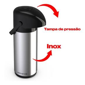 -design Prático de Pressão: O design foi cuidadosamente concebido para oferecer praticidade. A bomba de pressão facilita o despejo das bebidas, enquanto a alça ergonômica torna o manuseio mais confortável. -bico Anti-Pingo: Evite desperdícios e sujeira com o bico anti-pingo, proporcionando uma experiência de uso mais limpa e conveniente. -visual Sofisticado: Além de suas funcionalidades, esta garrafa térmica se destaca por seu visual sofisticado, adicionando um toque elegante à sua mesa. -qualidade e Resistência: Fabricada em inox de alta qualidade, esta garrafa é resistente e durável, assegurando que suas bebidas permaneçam na temperatura ideal. -eficiência Térmica: Mantém a temperatura das bebidas por no mínimo 4 horas, permitindo que você desfrute de café, chá ou outras bebidas quentes ao longo do tempo.